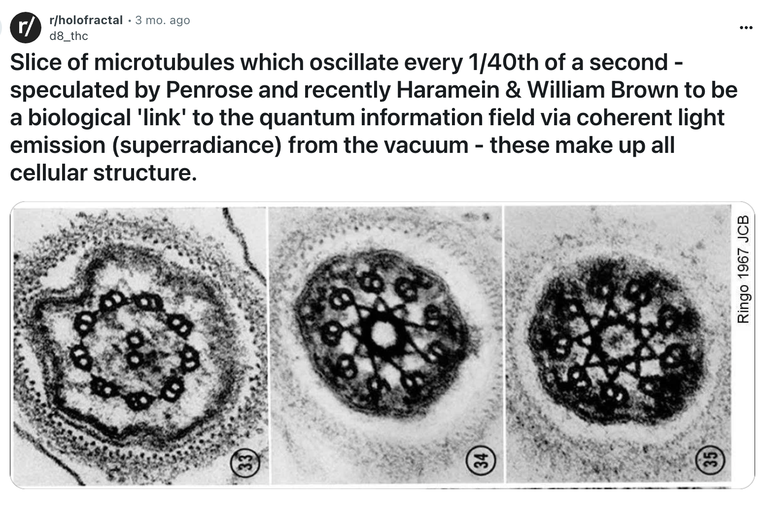 Interestingly enough, a cross-section of the microtubules in eukaryotic cells (and therefore in all humans, animals, plants, algae, etc.) reveal a stunningly maṇḍala-esque structure that has scientists theorizing that these microtubules, which are fundamental to forming the structure, adhesion, and movement of cells, are a biological link to the quantum vacuum, a theorized state of zero-point energy underlying the entirety of the cosmos. See for yourself: